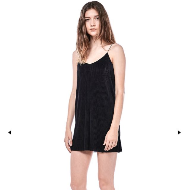 Black plisse slip dress.