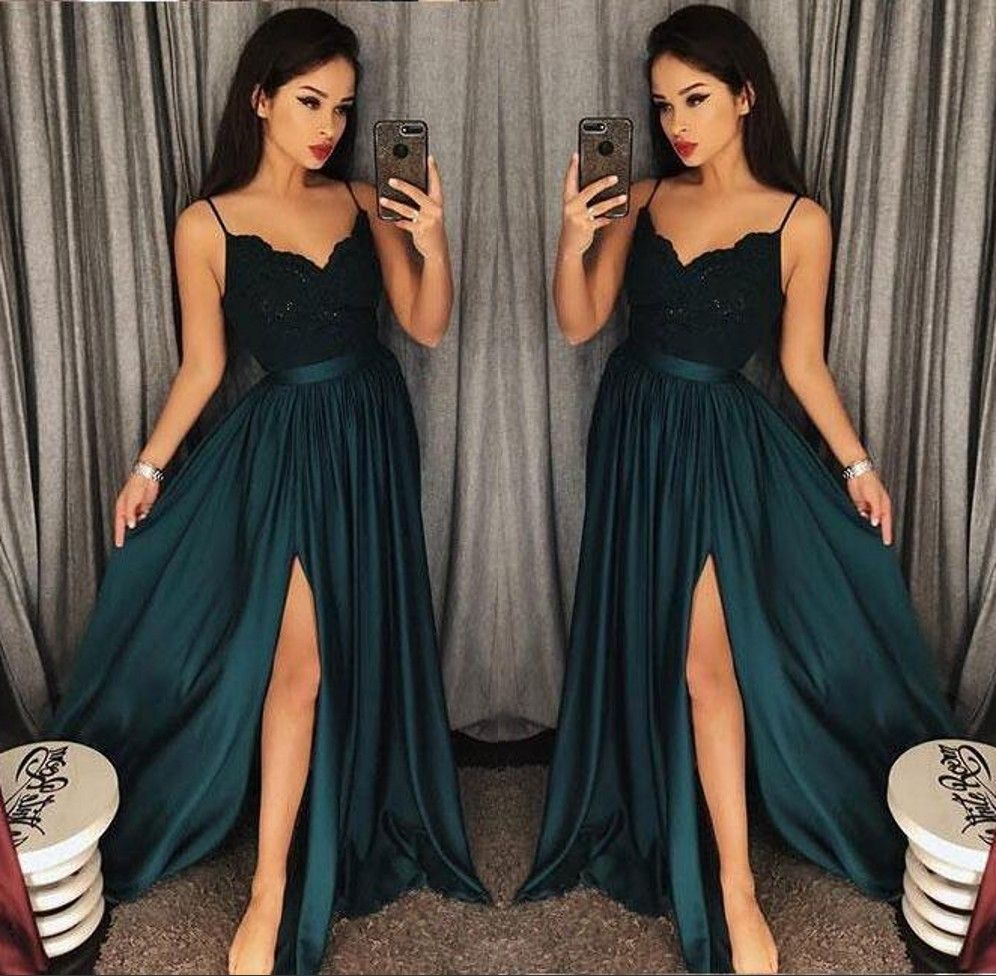 navy blue slit prom dress