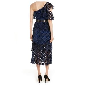 Navy One Shoulder Velvet Lace Midi self portrait one shoulder velvet midi dress
