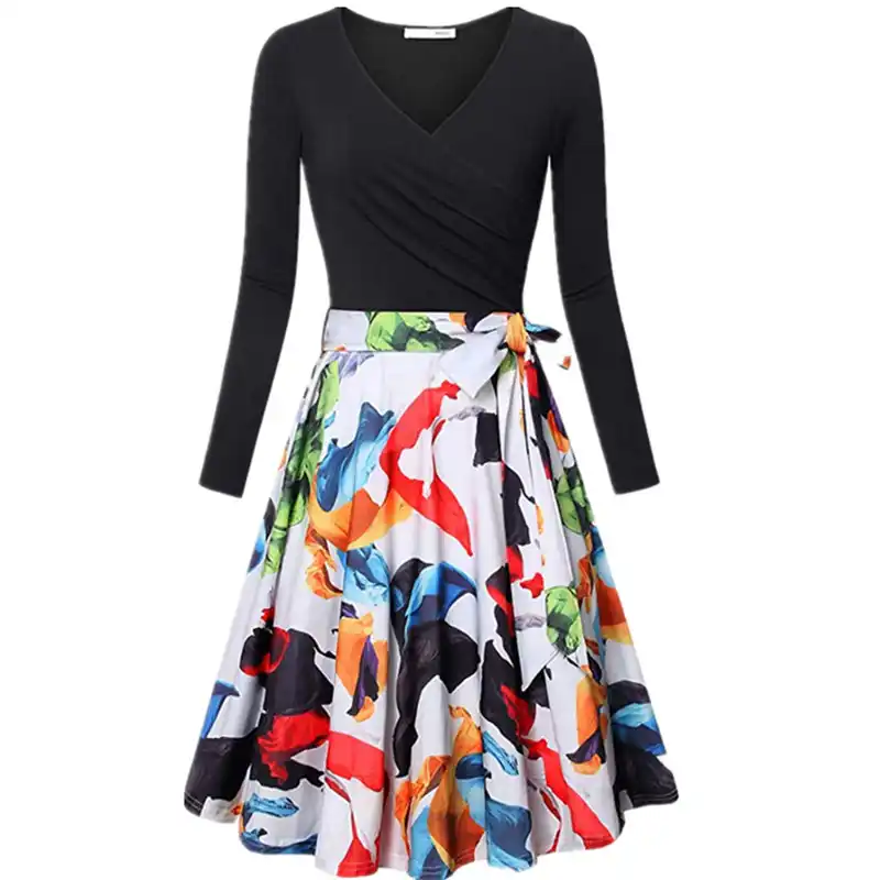 v neck long sleeve swing dress long swing dress with pockets