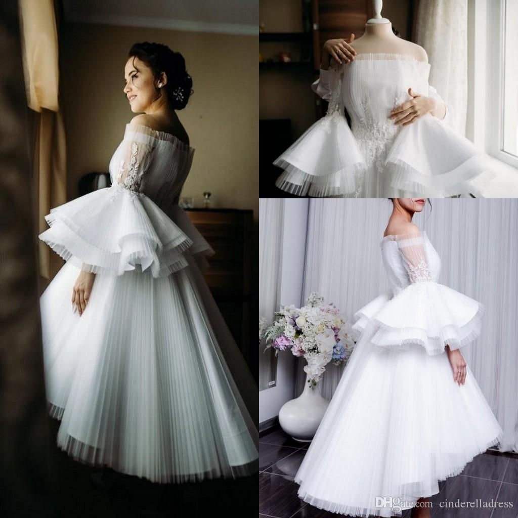 2020 Little White Prom Dresses Off off the shoulder puffy dress