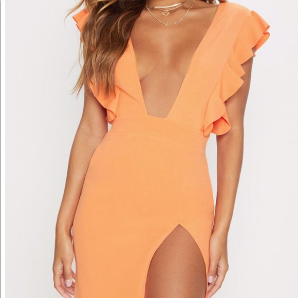 Orange Split Leg Body Con Dress orange split dress