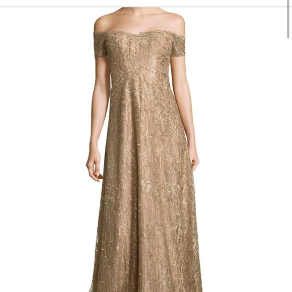 Rene Ruiz Off-The-Shoulder Embroidered rene ruiz gold gown