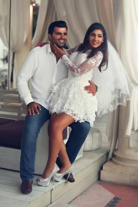 Lace Long Sleeve Back Button Short Mini mini plus size wedding dresses