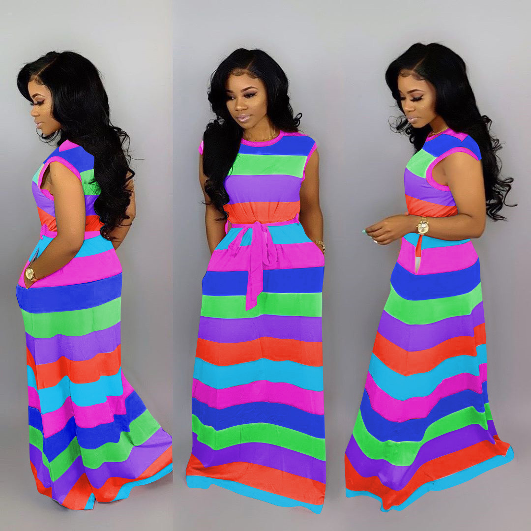 LETSVDO Womens Elegant Rainbow Stripe plus size rainbow maxi dress