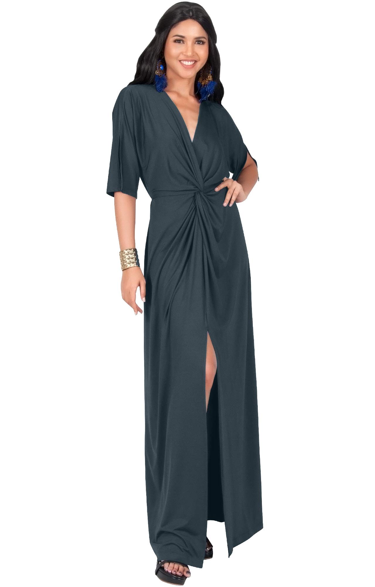 Sexy Kimono Short Sleeve Slit Wrap sexy gray v neck short sleeves maxi dress