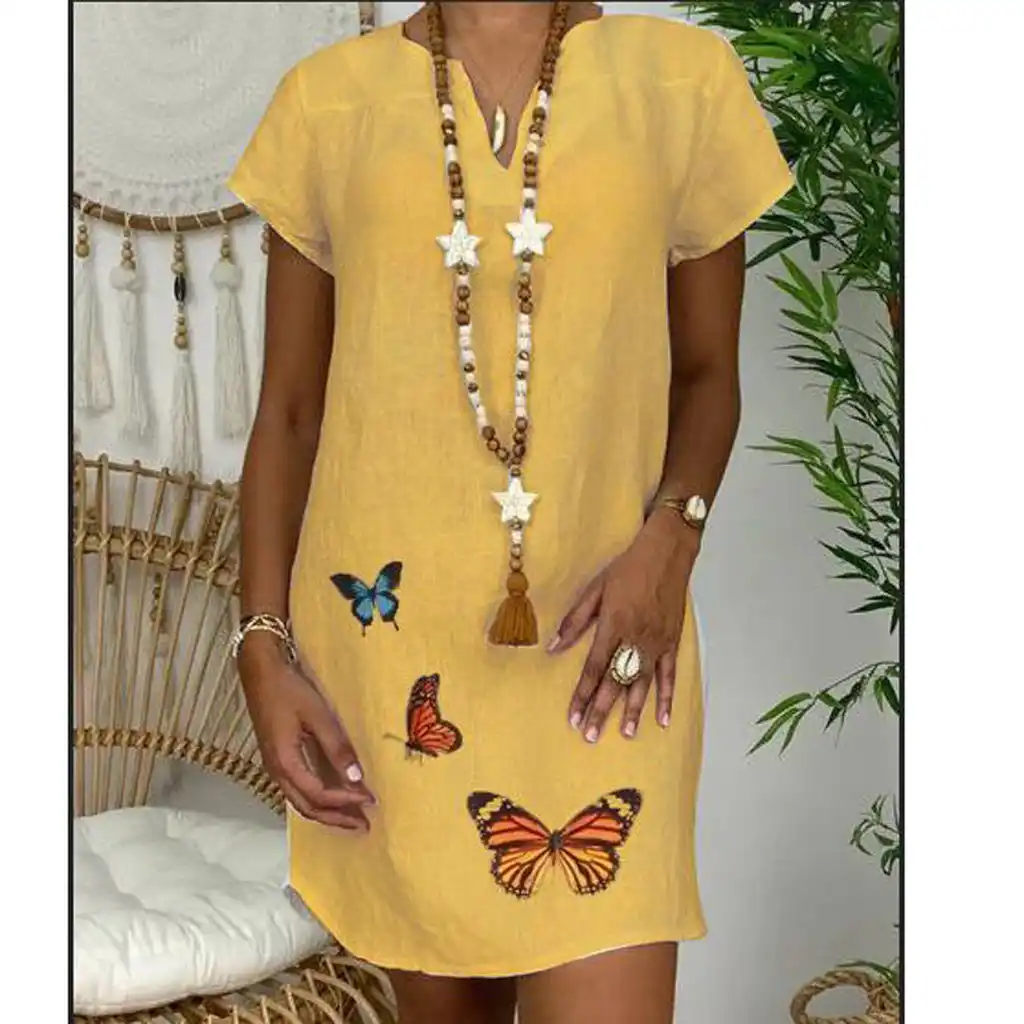 Plus Size Dress Women Vintage V neck yellow peplum dress plus size
