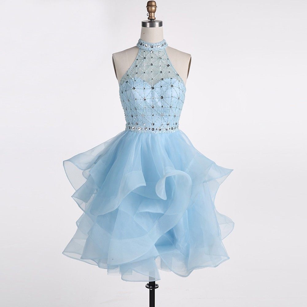 High Neck Light Blue Short Prom Dresses dresses for a 5th grade graduation