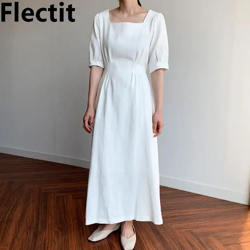 Flectit Retro White Maxi Dress Women white square neck maxi dress