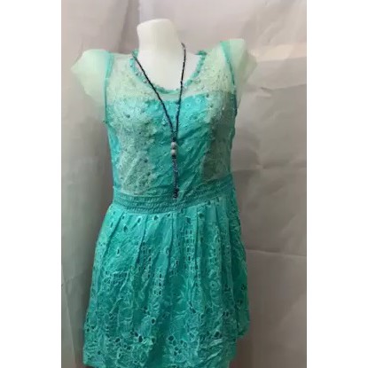 Aqua Chiffon Crochet Neckline Flower aqua chiffon dress