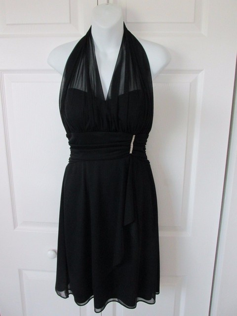 BETSY \u0026 ADAM by Linda Bernell Black black chiffon halter dress