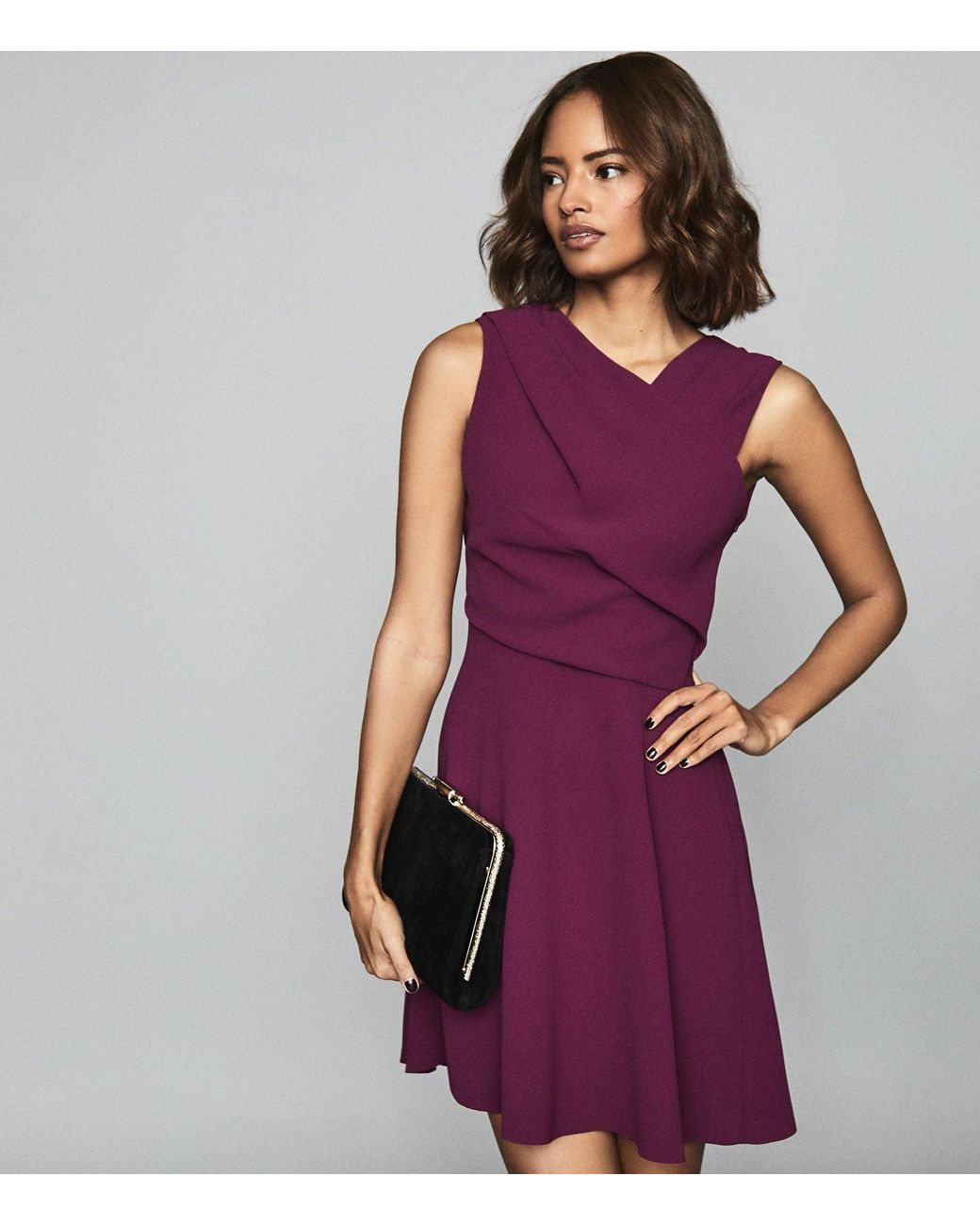 Reiss Synthetic Wrap Front Mini Dress purple wrap around dress