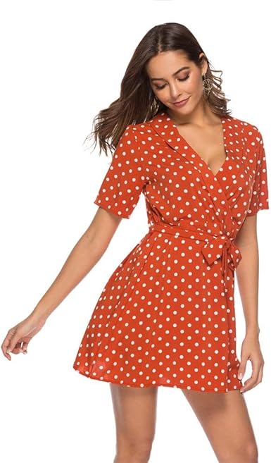 WDSFT Women Short Sleeve Suit V-Neck polka dot bow dress