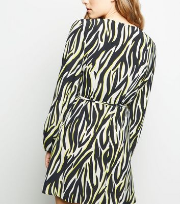 Petite Black Neon Zebra Print Wrap Mini new look zebra print dress