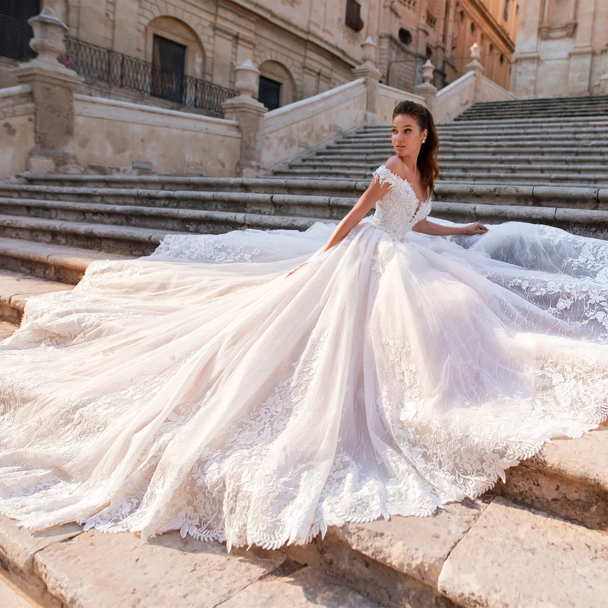 a line princess off the shoulder wedding dress