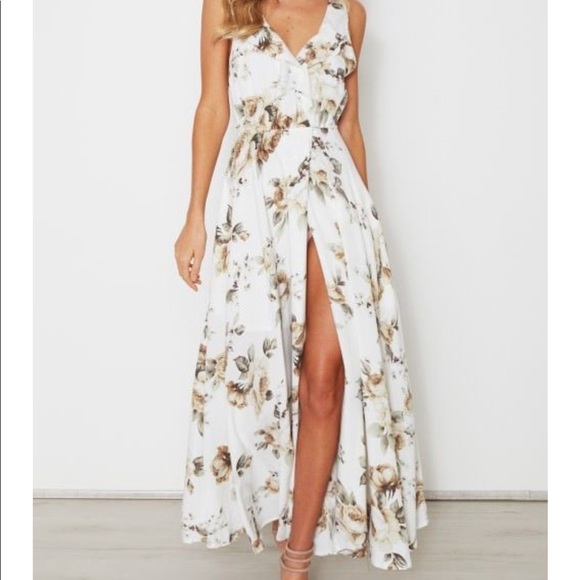White Spring Garden Floral Maxi Dress white spring maxi dresses