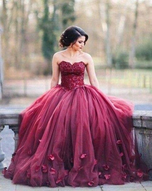 Burgundy Strapless Ball Gown Princess country quinceanera dresses