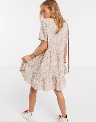 Pieces tiered smock dress in cream smock dress floral