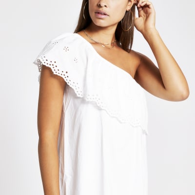 White one shoulder cut work mini smock smock work dress
