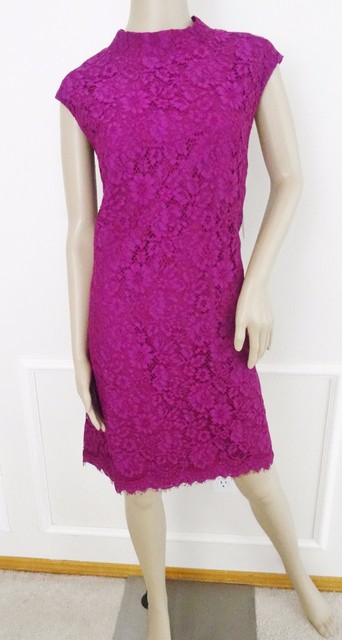 Donna Morgan Funnel Neck Lace Shift purple lace shift dress