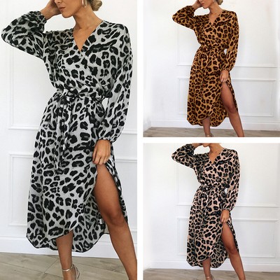 Classy Womens Leopard Long Sleeve Maxi womens leopard maxi dress
