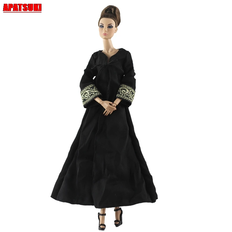 1pc Black Long Sleeve Long Dress for warm party outfits