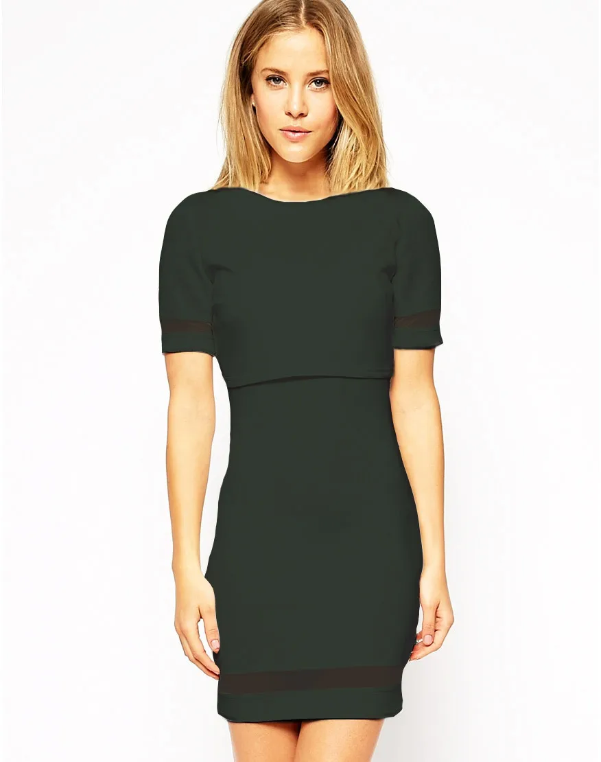 Sale Sheer Solid Crop Top Bodycon Dress dress with crop top overlay