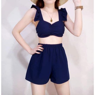 summer #outfits black crop top and gray short and crop top outfits