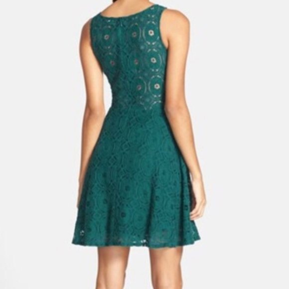 green lace fit and flare dress