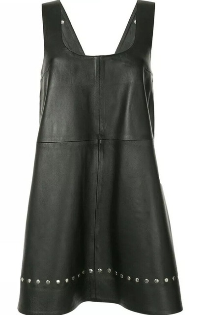 Alexa Chung Black Nappa Leather Mini studded jumper dress