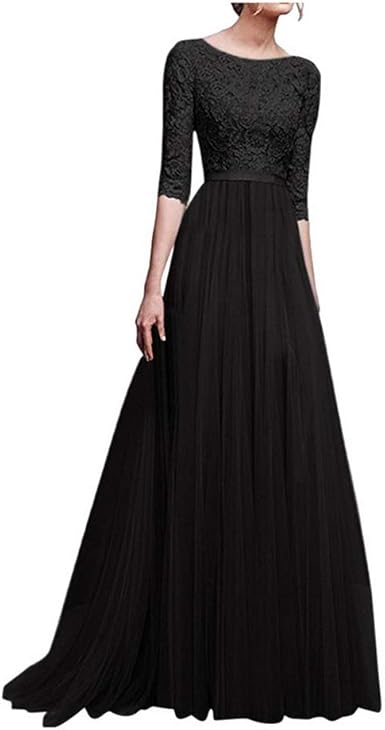 YiYu Black Lace High Waist Long Mopping black lace frocks