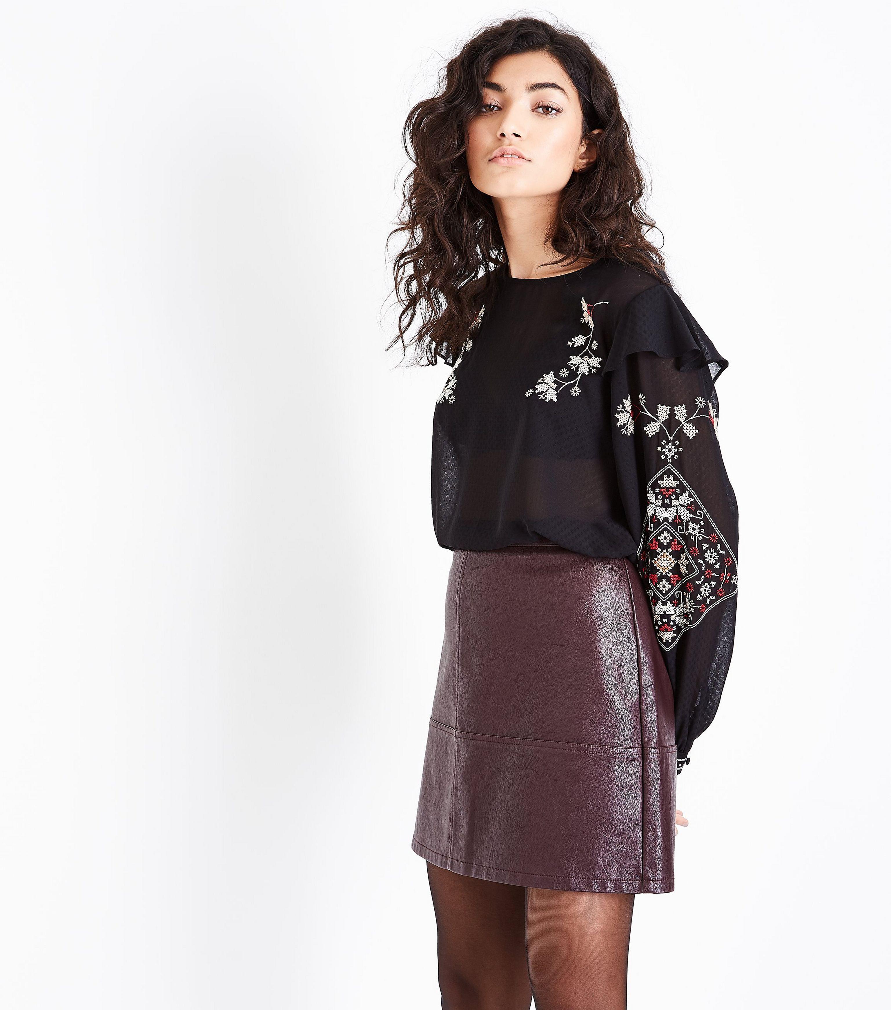 Burgundy Leather Skirt New Look burgundy leather dress