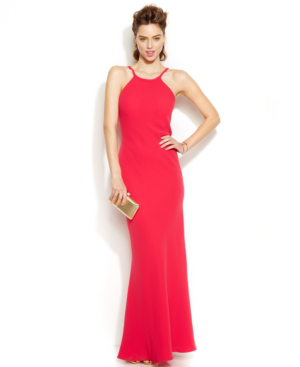 Calvin Klein Open-back Halter Gown In calvin klein open back halter gown