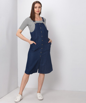 Women Pinafore Light Blue Dress pinafore dress flipkart