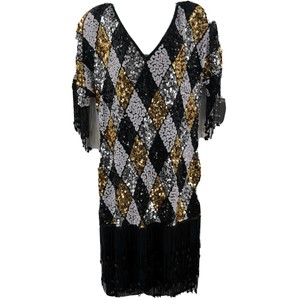 Vintage Black Gold and White Sequin white sequin fringe dress