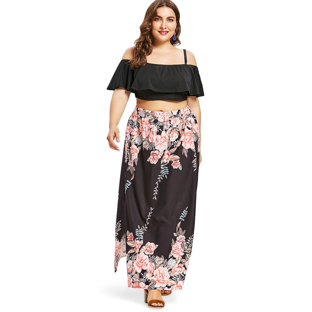 Womens Sexy Plus Size 2 Piece Midi