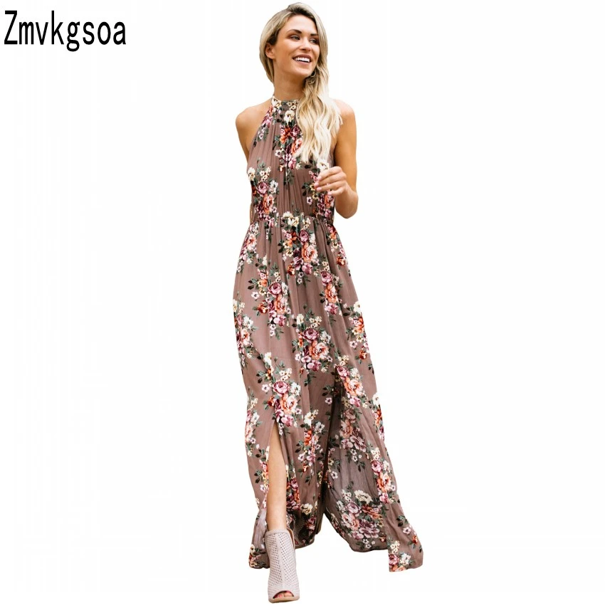 Tie Halter Tunic Sleeveless Beach floral front slit maxi tunic