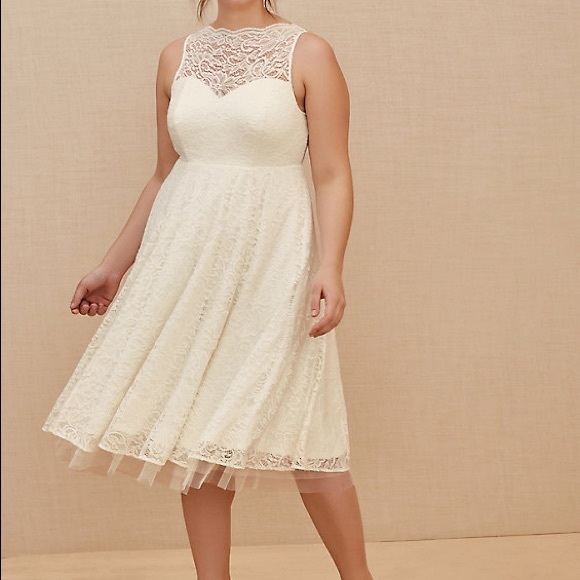 white lace tea length wedding dress