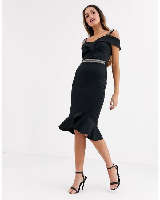 Scuba Ruffle Hem Midi Dress lipsy printed cold shoulder hanky hem dress