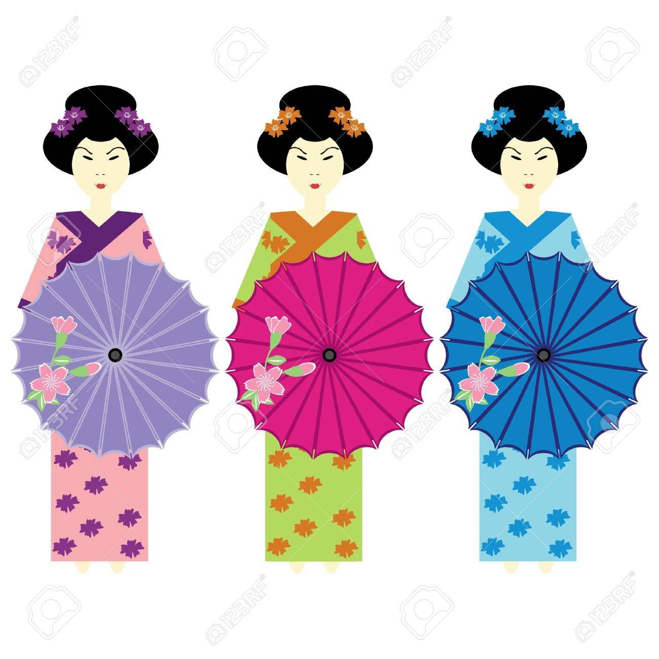 Three Girls In Japanese Dress Royalty girls japanese dress