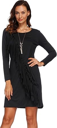 black dress with fringe tassel hem black dress with fringe hem