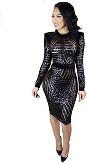 acelyn Womens Sexy Long Sleeve Sequins midi long sleeve sequin dress