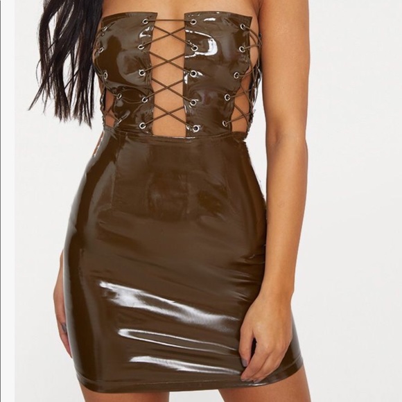 Olive Bandeau Vinyl Lace Up Front vinyl lace up dress