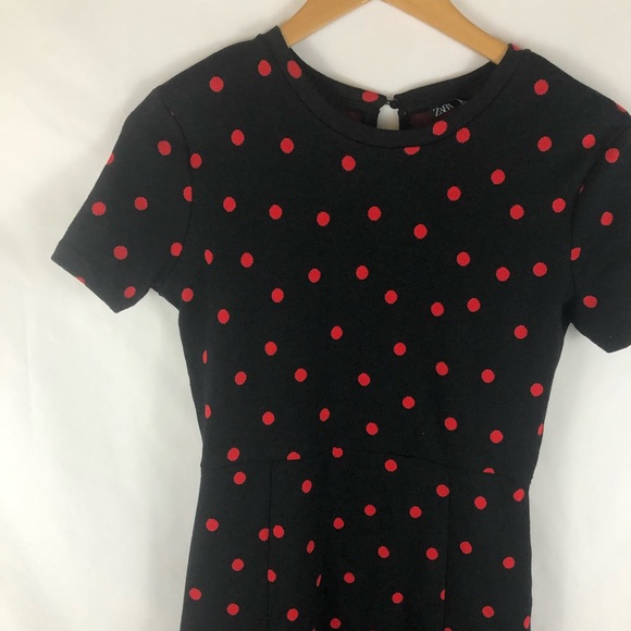 zara red and black polka dot dress
