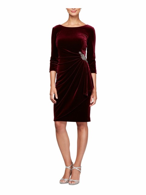 Alex Evenings Womens Burgundy 3/4 burgundy dress size 16