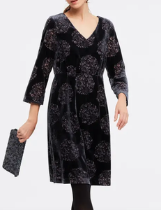 NAVY PRINT DEVORE VELVET DRESS -UK white stuff velvet dress