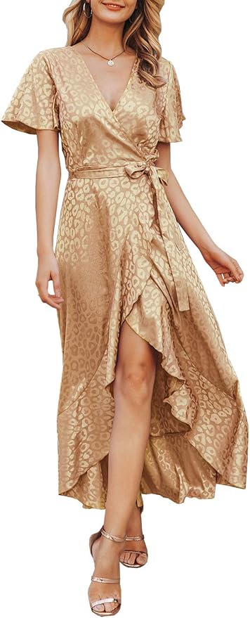 Miessial Women's Summer Chiffon V Neck chiffon ruffle maxi dress