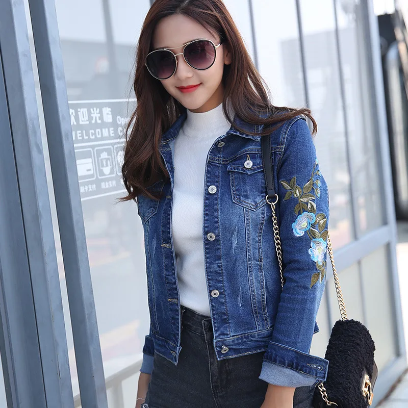 Floral Embroidery Denim Jacket Womens womens casual jacket to wear with jeans