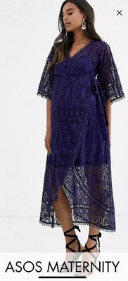 asos design maternity lace wrap midi dress
