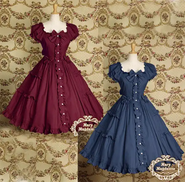 Navy/Red Victorian Vintage Puff Sleeve puff sleeve vintage dress
